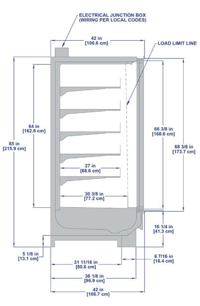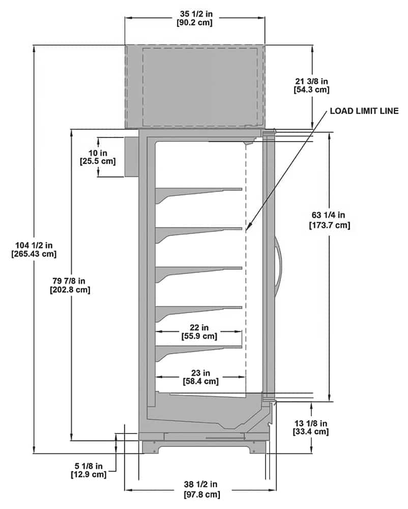 - Bottom-located refrigeration components facilitate serviceability and allow for full top-shelf merchandising with 66” or 72” interior height.